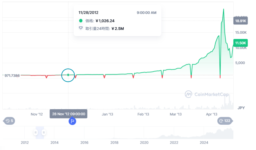 1回目の半減期(ビットコイン):2012年11月28日